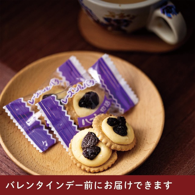 ほんのり塩味を効かせたひと口サイズの軽いクッキーに、濃厚なバターに小粒レーズンの酸味と甘みが程よく混じり合うリッチな味わい。個包装から取り出すだけで簡単にレーズンバタークラッカーが楽しめるひと品。昭和レトロを感じるパッケージとネーミングの通り、長きにわたりロングセラー商品として、喫茶店でコーヒーや紅茶のお共に、スナックやバーではウイスキーやワインに添えられた老舗スナックの定番チャームです。 ※秋冬限定取扱い商品 内容量 45g ※こちらはテイクアウト用です/同商品の配送は以下より https://hiramitu1918.base.shop/items/94366862