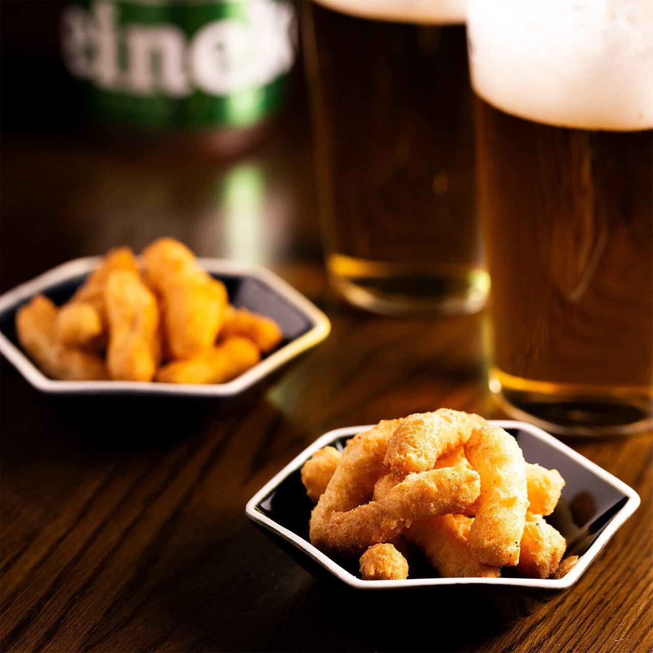 パスタミックス、七味八宝、濃厚チーズせんべい、黒糖そら豆、カレービンズ、京するめ、手巻納豆