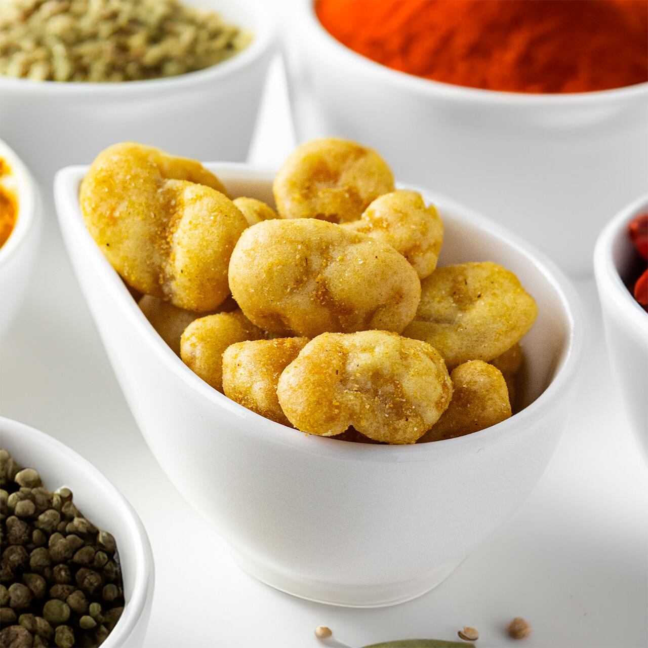 刺激の中にほんのりとした甘みが絶妙なバランス。スパイシーなのに辛さは控えめで、旨味はしっかり!甘みのある衣をまとった揚げそら豆のカリッと小気味よい食感と香ばしさがカレーの香りと重なり、手が止まらなくなるクセになる味わい。