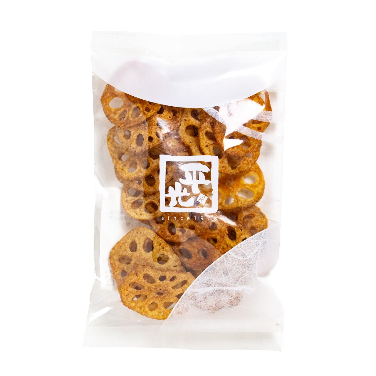 国産の上質なレンコンを真空窯で揚げ、焦がすことなく水分を飛ばし、特有の香ばしさと噛み心地を引き出しました。その仕上がりは懐石料理のあしらいにも利用されるほど上品。揚げに使うのは国産米油。揚がったレンコンに香りを添えています。味付けは鳴門の海から作った国産塩。奥深い味わいが、素材由来の味を引き立てています。硬めの食感をザクッ、ザクッとひと噛み毎に味わう、大人のためのおつまみスナック。ビール、日本酒や焼酎などの和酒によく合い、白ワインやお茶請けにもお勧めです。