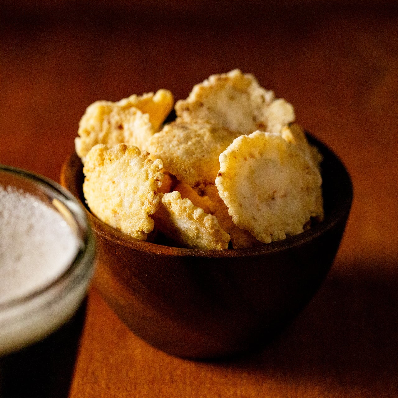 濃い目の味付けと牛肉由来のジューシーな旨味が病み付きになると、一般の方から夜の街でも長年大人気のおつまみスナックです。北海道産の馬鈴薯から作られた澱粉に牛肉そぼろをたっぷり練り込み、サクサクとした軽い食感に仕上げ、塩胡椒とガーリックパウダーで味付け。シンプルながら唯一無二の味わいはスナック系おつまみ屈指の傑作です!コク深い重めのビールやハイボールとの相性が大変良く、万人受けする味わいはお子様のおやつにもぴったりです!