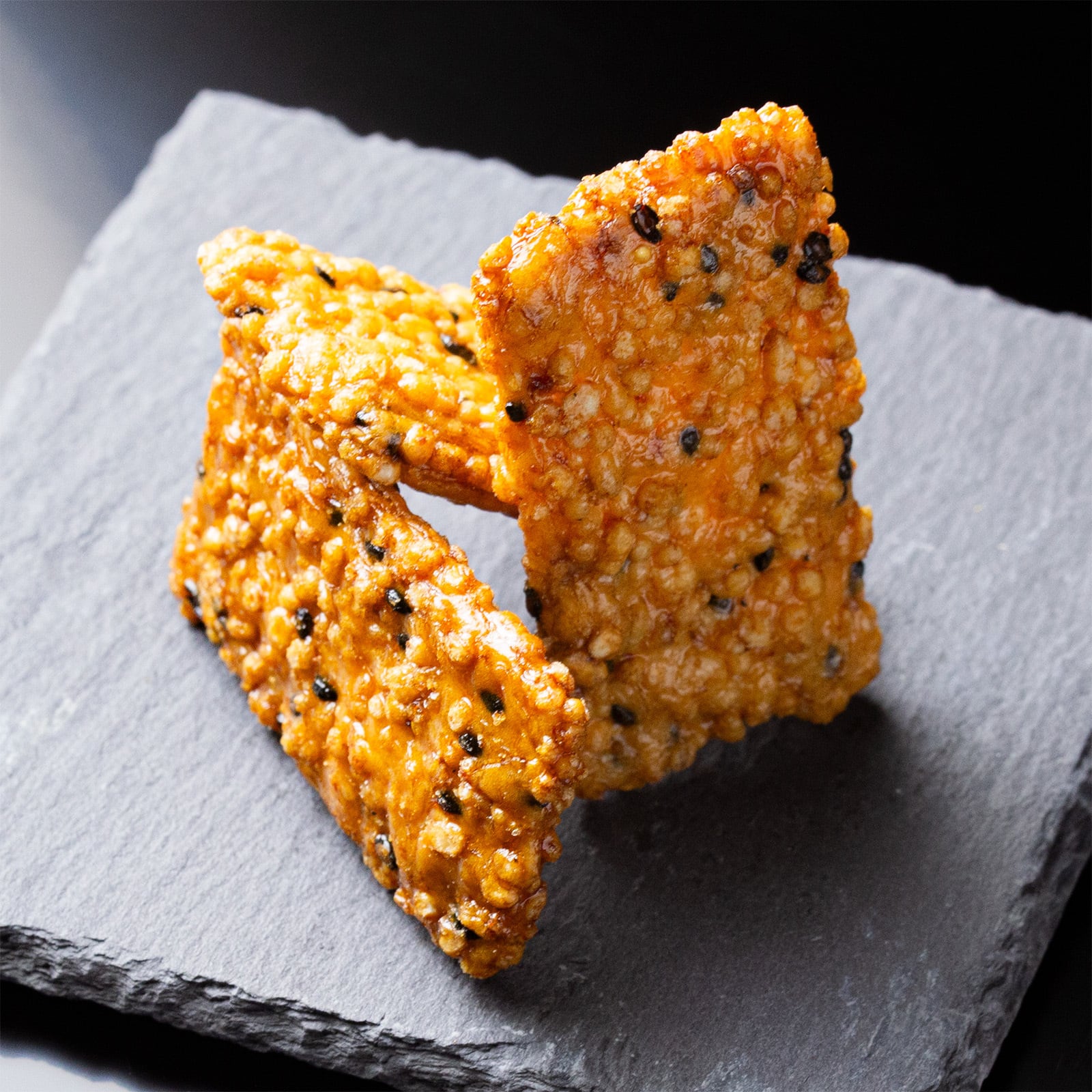 同シリーズの醤油味より控えめな甘辛さに、散らした黒胡麻がアクセントとしてふわりと香ります。クセのない上品な風味はお茶請けにもぴったりで、どなたにも美味しく召し上がっていただけます。