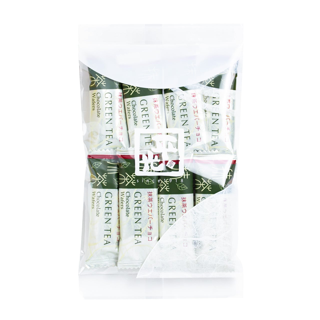 薄く焼き上げた特製ウエハースで、口どけの良い抹茶チョコレートをサンドしました。