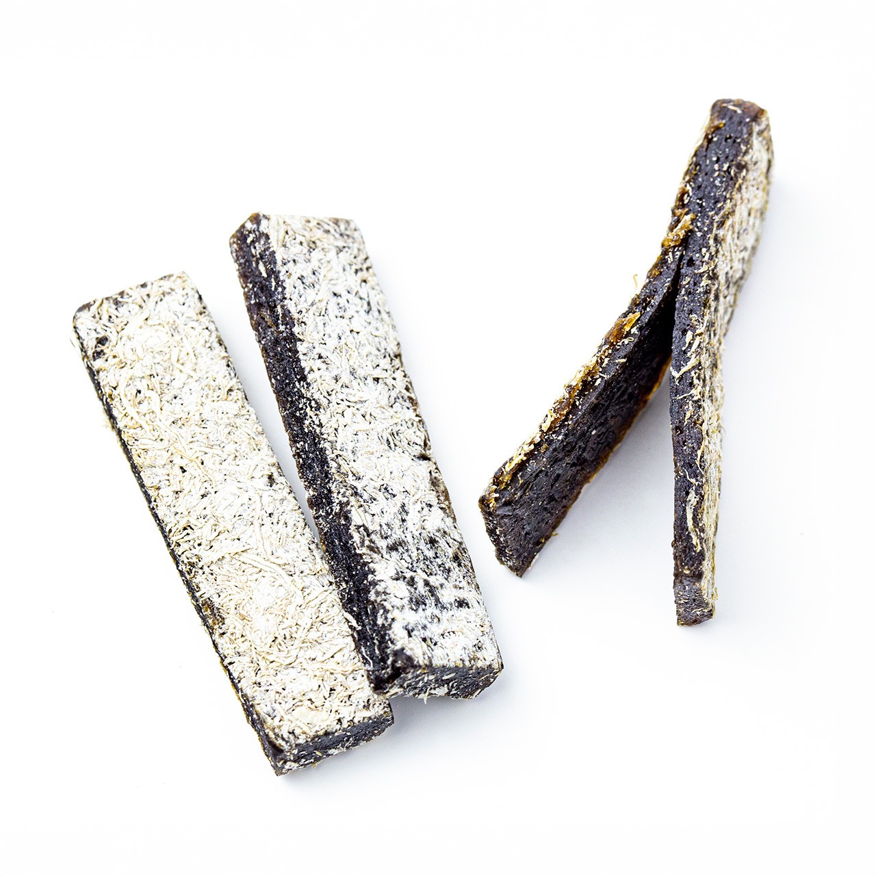 北海道産の棹前昆布(さおまえこんぶ:本来の採取時期より早く引き上げた、柔らかく旨味成分を多く含む若い昆布)を甘辛く味付けし、薄くカット。それを幾層かに重ねることで口どけを良くし、表面にはとろろ昆布を薄く貼り付けた北海道の傑作珍味。