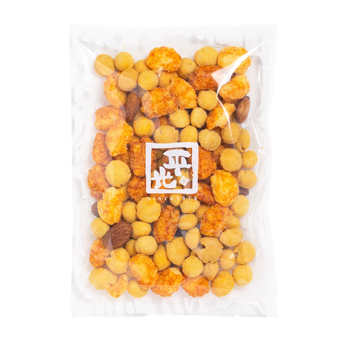 絶妙な組み合わせが美味しい、明太子おかきとチーズ味の豆菓子、香ばしいローストアーモンドのミックス。味を引き立て合うように設計された個性の調和が美味しさの秘密!明太子おかきは旨味際立つピリ辛仕立て。小粒で可愛い豆菓子はチーズパウダーたっぷりの濃厚な味わい。ローストアーモンドの香ばしさが個性強めの2つを見事に繋ぎます。交互に食べるもよし、一緒に頬張るもよし。美味しさの相乗効果に手が止まりません!ビールと合わせたり、ハイボールやライトな赤ワイン片手にお手軽スナック感覚で楽しむのもあり。