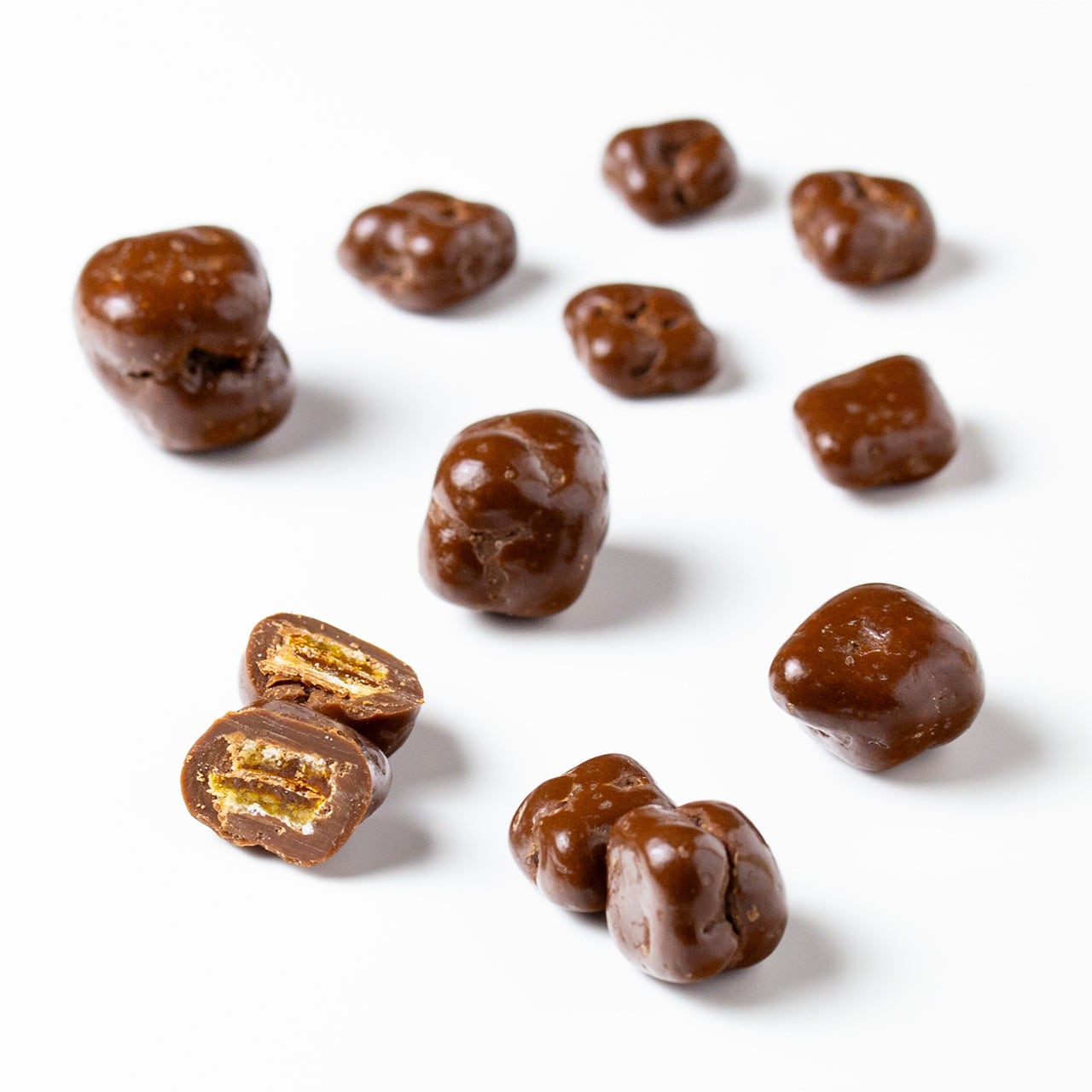 このたんかんの果皮を砂糖漬けにし、ミルクチョコでコーティングしました。香り高く、甘く、少しだけほろ苦いたんかんピールとチョコの優しい甘み。チョコの中で極薄く結晶化した砂糖のシャリッとした食感の組み合わせが絶妙です!